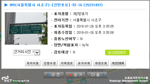 Road sign management system is to manage road signs and analyze it for the appropriateness of location and guide information. Through review/supplement application and various statistics function, it can be used for overall understanding of road sign information status and a basis of policy decision. In addition, in order to properly manufacture, install and maintain road signs, road sign designs are standardized by each type so that the systematic and reasonable road sign automatic design program(RoadGuider) is developed. (www.roadsign.go.kr)